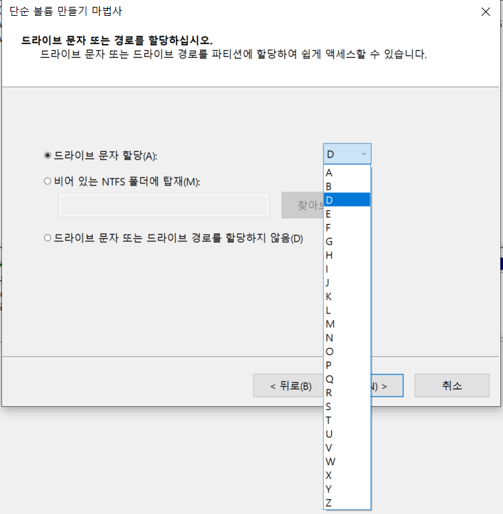 설정하면 위 그림처럼 100GB메모리가 생긴것을 확인할수 있습니다. 새 단순 볼륨을 클릭하시고